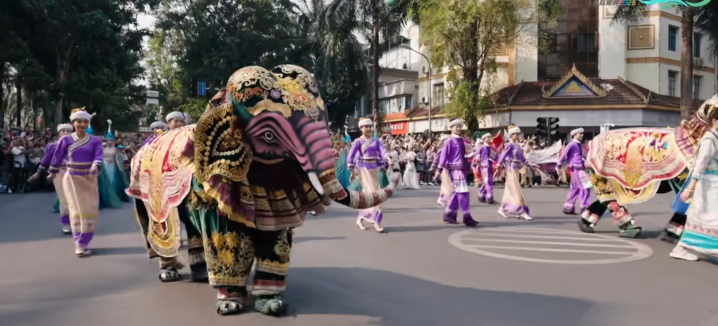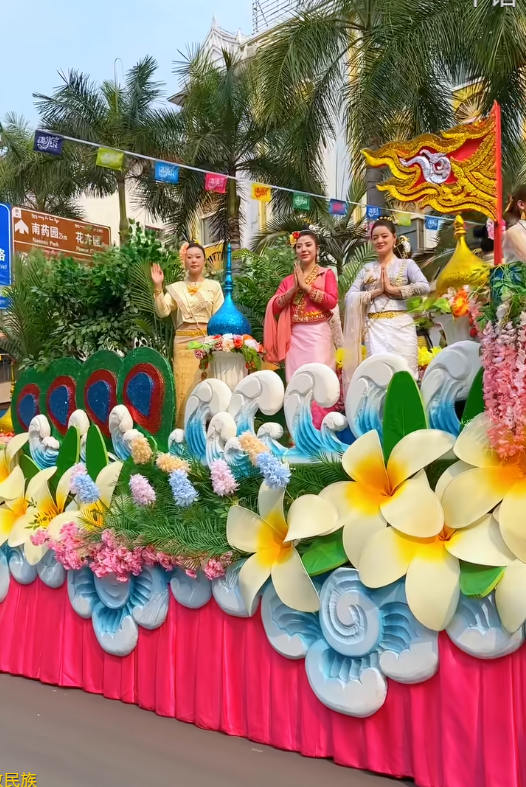 傣历 1388 新年,2026 西双版纳泼水节如约而至。花车巡游正式开始的瞬间,整条街道瞬间沸腾。我站在人群里,被眼前的景象彻底震撼 —— 一眼望不到头的花车缓缓前行,精美华丽、气势恢宏,民族图腾、孔雀、大象、金塔点缀其间,像从童话里开出来的梦境车队。