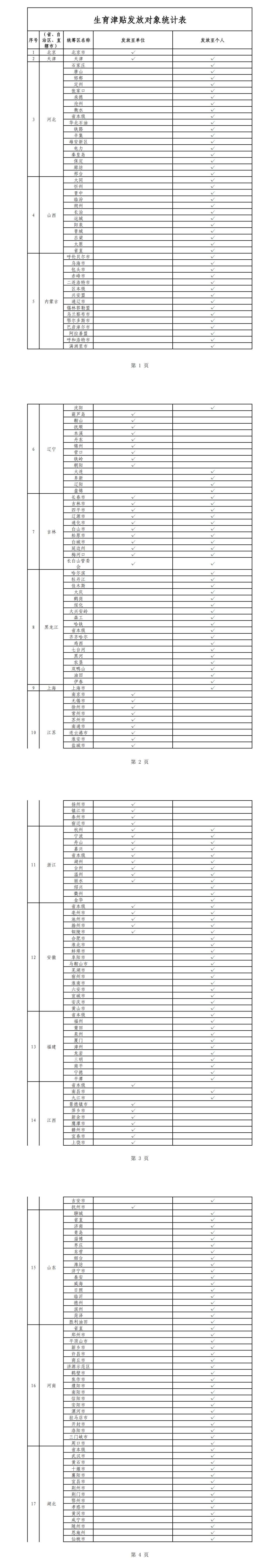 国家医保局积极推进各地医保部门优化生育津贴发放流程,持续调度推进生育津贴直接发放至个人抓牛网,切实提升群众的获得感与满意度。自6月以来,河北、浙江、吉林、云南、河南等省又相继在全省全面推开生育津贴发放至个人。四川省也已于近日正式发文,9月1日起在全省全面实现生育津贴直达个人。目前,全国有20个省份(含新疆生产建设兵团)全面实现生育津贴直接发放至个人,即河北、山西、内蒙古、吉林、黑龙江、上海、浙江、福建、山东、河南、湖北、海南、重庆、四川、云南、西藏、甘肃、青海、宁夏、新疆生产建设兵团,实现生育津贴直接发放至个人的统筹区占比将近8成。各统筹区生育津贴发放具体情况详见下表。